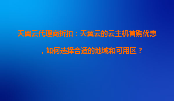 2025-10-31天翼云代理商折扣:天翼云的云主机首购优惠,如何选择合适的地域和可用区? 一、天翼云的资源优势与代理商折扣概述 天翼云作为中国电信旗下的云计算服务品牌,凭借央企背景和全国覆盖的网络基础设施,提供高...