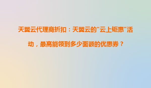 2025-10-31天翼云代理商折扣解析:"云上钜惠"活动优惠券面额及合作优势 一、天翼云"云上钜惠"活动核心福利 在天翼云近期推出的"云上钜惠"促销活动中,用户最高可领取5000元面额的云服务优惠券。该活动针对新老用...