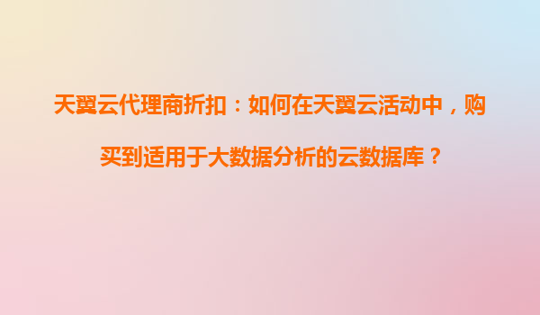 2025-10-31如何在天翼云活动中购得适用于大数据分析的云数据库 天翼云在大数据分析领域的优势 天翼云作为中国电信旗下的云计算服务品牌,凭借运营商级的基础设施和丰富的行业经验,在大数据分析领域具有显著优势。其云数...