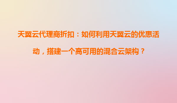 2025-10-31如何利用天翼云代理商折扣搭建高可用混合云架构 一、混合云架构的价值与天翼云优势 混合云架构结合了公有云的灵活性和私有云的安全性,已成为企业数字化转型的主流选择。天翼云作为中国电信旗下云计算...