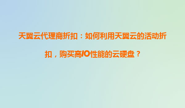 2025-10-31天翼云代理商折扣:如何利用天翼云的活动折扣,购买高IO性能的云硬盘? 一、天翼云的优势与高IO性能云硬盘的价值 天翼云作为中国电信旗下的云计算服务商,凭借丰富的网络资源和稳定的基础设施,在云存储领...