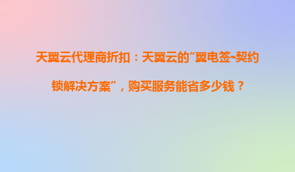 2025-11-01天翼云代理商折扣:翼电签-契约锁解决方案为您节省成本 一、天翼云代理商折扣概述 天翼云作为中国电信旗下的云计算服务品牌,为企业用户提供全方位的云服务解决方案。通过天翼云代理商购买云服务,...