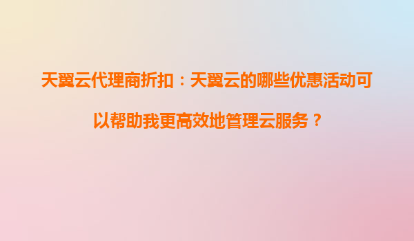 2025-08-22天翼云代理商折扣:如何通过天翼云的优惠活动提升云计算服务的性价比? 引言 在数字化转型加速的今天,云计算已成为企业提升运营效率和降低成本的关键工具。天翼云作为国内领先的云服务提供商,凭借其强大的基础设...