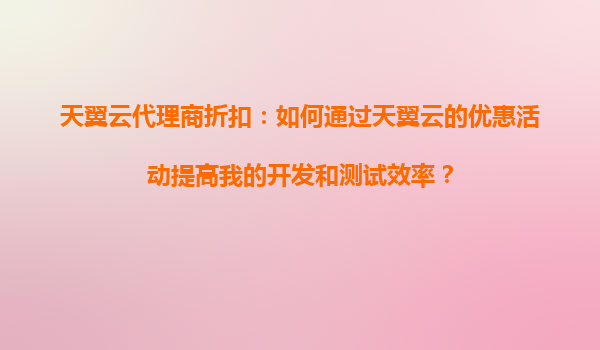 2025-08-21天翼云代理商折扣:如何通过天翼云的优惠活动提高我的开发和测试效率? 一、天翼云的核心优势 天翼云作为中国电信旗下的云计算服务提供商,凭借其强大的基础设施和丰富的资源优势,为用户提...