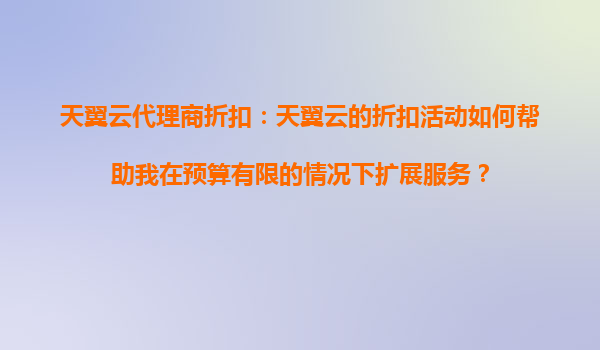 2025-08-21天翼云代理商折扣:如何助力有限预算下的服务扩展? 一、引言:预算限制与云服务的平衡 在数字化转型的浪潮中,云计算已成为企业提升效率的刚需。然而,对于许多中小企业或初创团队而...