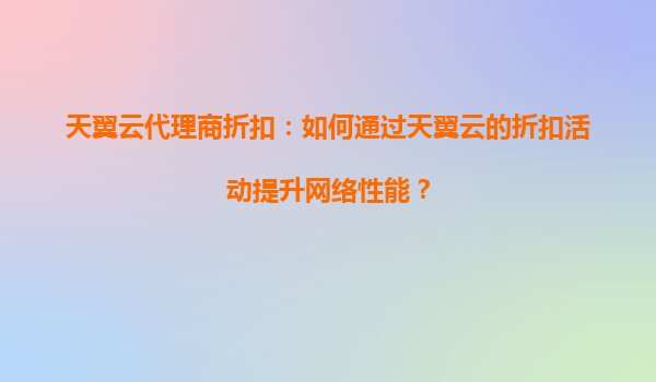 2025-08-21天翼云代理商折扣:如何通过天翼云的折扣活动提升网络性能? 一、天翼云的核心优势解析 天翼云作为中国电信旗下的云计算服务品牌,凭借其独特的资源和技术优势,为企业提供了高性能的云服务解决方案。其主...