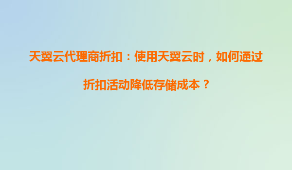 2025-08-19天翼云代理商折扣:使用天翼云时,如何通过折扣活动降低存储成本? 一、天翼云的核心优势 天翼云作为中国电信旗下的云计算服务品牌,凭借其央企背景和强大的基础设施能力,提供了高可靠、高安全的云存储解...