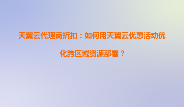 2025-08-19天翼云代理商折扣策略:如何用天翼云优惠活动优化跨区域资源部署 一、天翼云跨区域部署的挑战与机遇 随着企业数字化转型加速,跨区域业务部署成为刚需。但传统模式下,企业常面临以下痛点: 成本居高不下:自建数...
