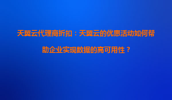 2025-08-16天翼云代理商折扣:如何通过天翼云优惠活动助力企业实现数据高可用性 引言 在数字化转型的浪潮中,企业对数据高可用性的需求日益增长。天翼云作为中国电信旗下的云计算服务提供商,凭借其强大的基础设施和丰富的服...