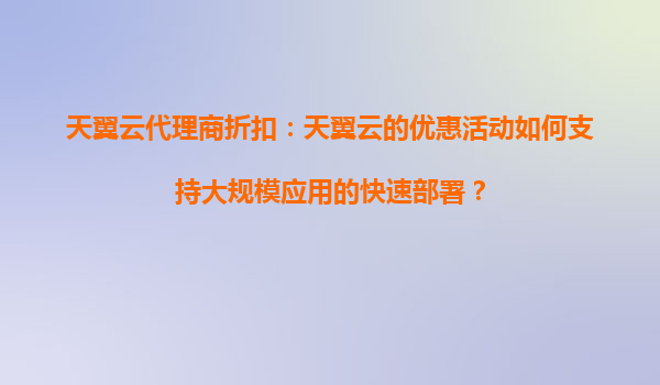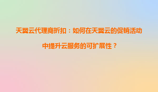 天翼云代理商折扣:如何在天翼云的促销活动中提升云服务的可扩展性? 引言 随着云计算技术的快速发展,越来越多的企业开始将业务迁移到云端。作为国内领先的云计算服务提供商之一,天翼云凭借其强大的技...