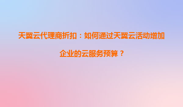 2025-08-16天翼云代理商折扣:如何通过天翼云活动增加企业的云服务预算? 一、天翼云的核心优势解析 天翼云作为中国电信旗下的云计算品牌,凭借央企背景和技术实力,在资源覆盖、安全性及本土化服务上具备显著优...
