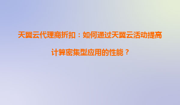 2025-08-16天翼云代理商折扣:如何通过天翼云活动提高计算密集型应用的性能? 一、计算密集型应用的挑战 计算密集型应用(如人工智能训练、科学模拟、大数据分析等)对算...