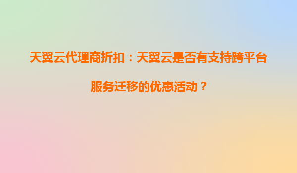 2025-08-16天翼云代理商折扣:跨平台服务迁移的优惠活动解析与优势详解 一、天翼云跨平台服务迁移优惠活动说明 近年来,随着企业数字化转型加速,云服务迁移需求显著增长。天翼云作为中国电信旗下...
