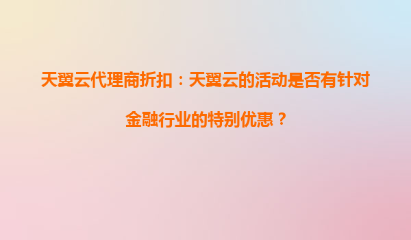 2025-08-16天翼云代理商折扣解析:金融行业特别优惠探讨 一、天翼云核心优势概览 作为中国电信旗下云计算品牌,天翼云凭借央企背景和本土化服务能力,在数据安全、资源布...