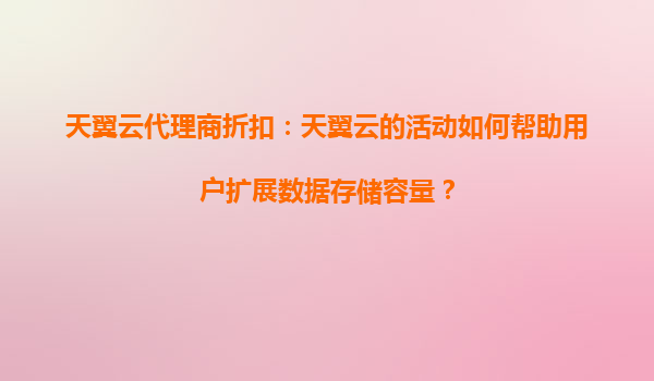 2025-08-16天翼云代理商折扣:天翼云活动如何助力用户扩展数据存储容量 一、引言:数字化时代的存储挑战 随着5G、AI和大数据的快速发展,企业及个人用户的数据存储需求呈现爆发式增长。传统的本地...