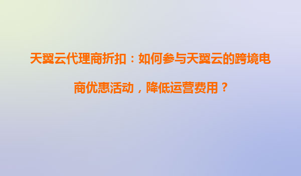 2025-08-16天翼云代理商折扣:如何参与天翼云的跨境电商优惠活动,降低运营费用? 一、天翼云的核心优势 对于跨境电商企业而言,选择天翼云作为云计算服务商能够显著提升业务效率并降低成本。以下是天翼云的...