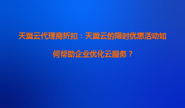 2025-08-15天翼云代理商折扣:天翼云的限时优惠活动如何帮助企业优化云服务? 一、天翼云的核心优势与企业级价值 中国电信天翼云作为国内领先的云计算服务商,凭借其央企背景,构建了覆盖全国的基础设...