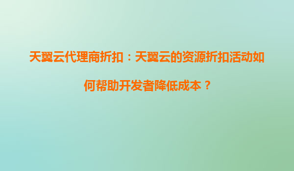 2025-08-15天翼云代理商折扣:天翼云的资源折扣活动如何帮助开发者降低成本?引言在数字化时代,云计算已成为企业和开发者构建应用、存储数据和实现业务扩展的重要基础设施。然而,高昂的云计算成本往往成为开发...