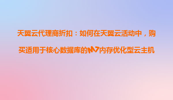 2025-10-30天翼云代理商折扣指南:如何高效购买M7内存优化型云主机 一、天翼云M7云主机的核心价值 天翼云M7内存优化型云主机专为数据库、大数据分析等高内存需求场景设计,具备三大优势: ...