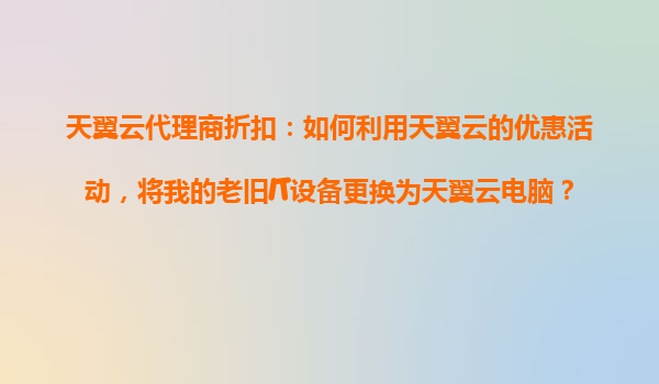 2025-10-31天翼云代理商折扣攻略:低成本将老旧IT设备升级为云电脑 一、传统IT设备的痛点与云电脑的优势 传统IT设备存在维护成本高、安全性低、性能落后等问题。而天翼云电脑提供以下核心优势: 弹性配置:按...