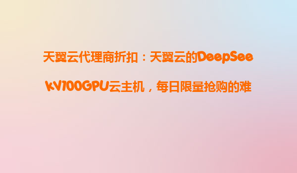 2025-10-30天翼云代理商折扣:DeepSeekV100GPU云主机每日限量抢购难度分析 一、天翼云的核心优势 作为中国电信旗下的云计算品牌,天翼云凭借央企背景和遍布全国的数据中心网络,在基础设施、安全保障和服务稳定...