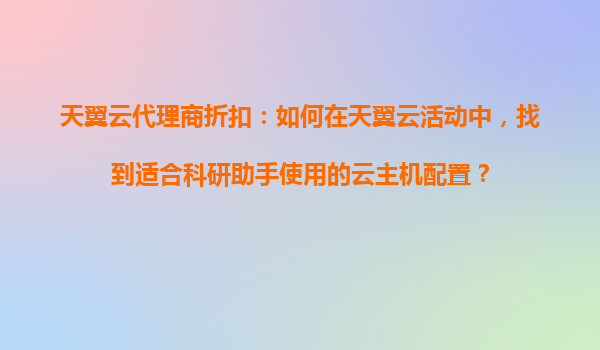 天翼云代理商折扣:科研助手云端配置指南 一、天翼云的核心优势 科研项目对云计算的要求往往兼顾性能、稳定性与成本效益,天翼云凭借以下优势成为理想选择: 国资背景保障:中...