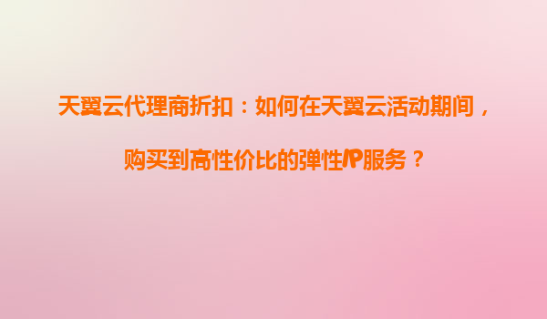 2025-10-30天翼云代理商折扣:如何在天翼云活动期间,购买到高性价比的弹性IP服务? 一、天翼云弹性IP服务的优势 天翼云作为中国电信旗下的云计算服务品牌,凭借强大的基...