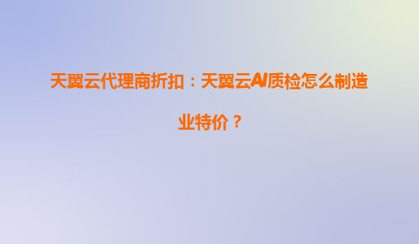 天翼云AI质检助力制造业降本增效代理商折扣特惠来袭 制造业质检痛点与数字化转型需求 在制造业生产流程中,产品质量检测是确保出厂合格率的关键环节。传统人工质检存在效率低下、标准不...