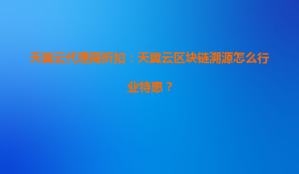 2025-08-14天翼云代理商折扣:天翼云区块链溯源行业特惠方案解析 一、天翼云代理商折扣政策概述 天翼云作为中国电信旗下云计算服务品牌,为推广区块链溯源服务,针对代理商推出专项折扣政策。代理...