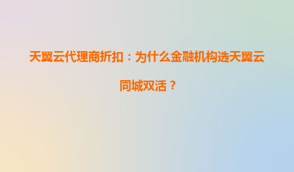 2025-08-10天翼云代理商折扣:为什么金融机构选天翼云同城双活? 引言 在数字化转型的浪潮中,金融机构对云计算的需求日益增长。天翼云作为中国电信旗下的云计算服务品牌...