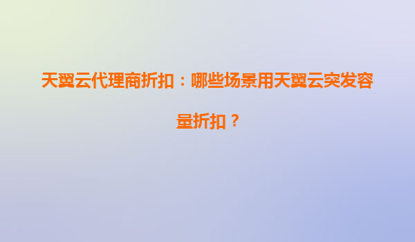 2025-08-10天翼云代理商折扣:哪些场景适用天翼云突发容量折扣? 一、天翼云的核心优势与代理商折扣机制 天翼云作为中国电信旗下的云计算服务品牌,凭借其覆盖全国的骨干网络资源、高安全性的数据中心以及符合政府和...
