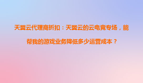 2025-10-30天翼云代理商折扣:云电竞专场如何助力游戏业务降本增效 一、云电竞专场的核心价值:聚焦游戏行业需求 天翼云代理商推出的"云电竞专场"活动,针对游戏行业提供专属云计算资源折扣方案,通过以下方式精准匹...
