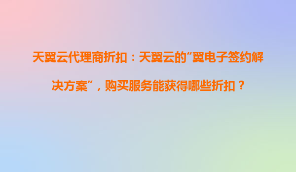 2025-10-30天翼云代理商折扣:揭秘“翼电子签约解决方案”的优惠与核心优势 一、天翼云“翼电子签约解决方案”代理商折扣政策 作为天翼云代理商,客户通过代理渠道购买“...