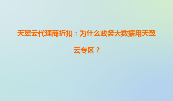 2025-08-09天翼云代理商折扣:为什么政务大数据用天翼云专区? 一、天翼云的核心优势与政务大数据的契合点 政务大数据具有数据量大、安全性要求高、业务连续性强的特点,而天翼云作为中国电信旗下的云计算服务商,凭...