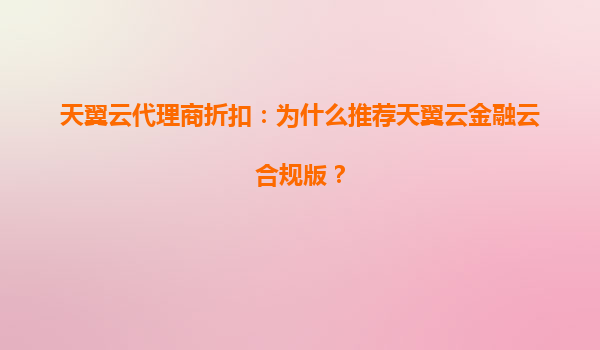 2025-08-09天翼云代理商折扣:为什么推荐天翼云金融云合规版? 引言 在数字化转型的浪潮中,云计算已成为企业IT基础设施的核心组成部分。对于金融行业而言,数据安全、合规性和稳定性更是重中之重。天翼云作为中国电信...