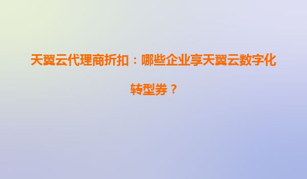 2025-08-08天翼云代理商折扣政策解读:哪些企业可享数字化转型券? 一、数字化转型券的覆盖范围 天翼云面向特定类型企业发放数字化转型券,主要惠及三类主体:一是注册成为天翼云官方代理商的合作伙伴,通过完成业绩...