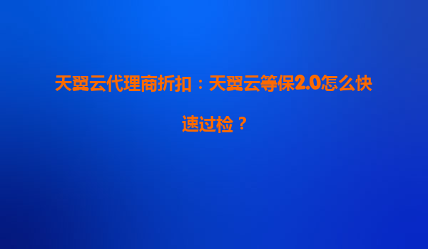2025-08-07天翼云代理商折扣:天翼云等保2.0快速过检指南 一、等保2.0的核心要求与挑战 网络安全等级保护2.0(简称等保2.0)是我国网络安全领域的重要法规,要求企业对信息系统进行分级保护。企业...
