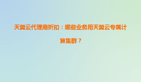 2025-08-07天翼云代理商折扣:哪些业务适合天翼云专属计算集群? 一、天翼云专属计算集群的核心优势 天翼云专属计算集群(DedicatedHostCluster)是一种基于物理隔离的云计算资源服务,为用户提供独享的计...
