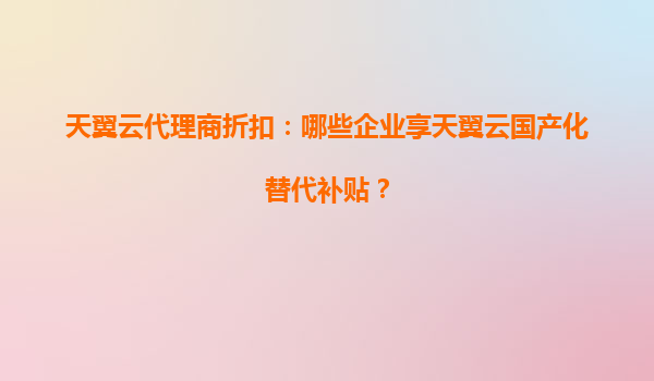2025-08-06天翼云代理商折扣:哪些企业享天翼云国产化替代补贴? 一、天翼云的核心优势 天翼云作为中国电信旗下的云计算品牌,凭借其强大的基础设施、安全可靠的服务以及本土化支持能力,已成为国内企业数字...