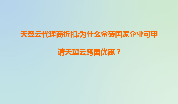 2025-08-06天翼云代理商折扣:为什么金砖国家企业可申请天翼云跨国优惠? 一、天翼云的全球资源优势与代理商体系 作为中国电信旗下云计算品牌,天翼云凭借央企背景和全球化布局,构建了覆盖全球主要经济体的数据中心网络...