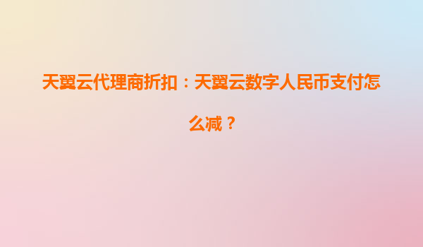 天翼云代理商折扣:数字人民币支付优惠详解 一、天翼云的核心优势 作为中国电信旗下的云计算品牌,天翼云凭借以下优势成为企业数字化转型的首选: ...