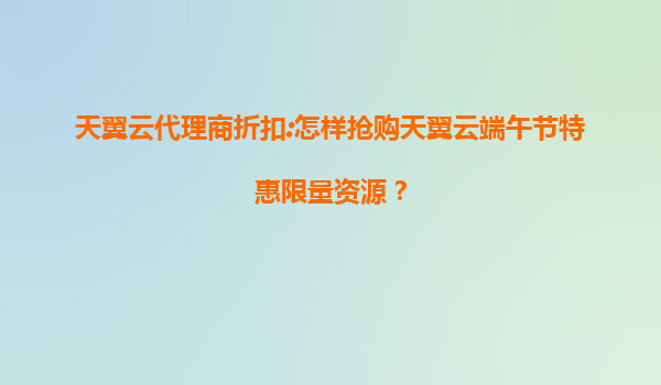 2025-08-05天翼云代理商折扣:怎样抢购天翼云端午节特惠限量资源? 一、天翼云的核心优势解析 天翼云作为中国电信旗下的云计算品牌,凭借央企背景和全国覆盖的基础设施,在稳定性、安全性及本地化服务上具备显著优势...
