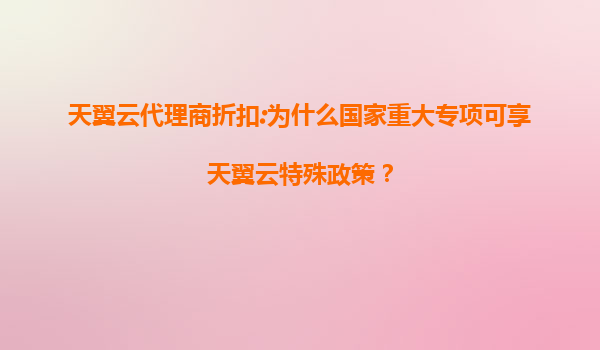 2025-08-05天翼云代理商折扣:国家重大专项为何可享天翼云特殊政策? 引言 在数字化转型的浪潮中,云计算已成为推动国家经济发展和社会进步的重要基础设施。作为中国电信旗下的云计算服务品牌,天翼云凭借其技术实力...