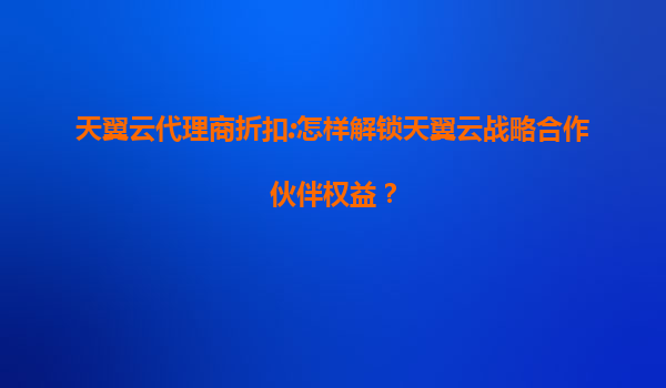 2025-08-04天翼云代理商折扣:如何解锁天翼云战略合作伙伴权益? 一、天翼云的战略合作伙伴体系 天翼云作为中国电信旗下的云计算服务品牌,构建了多层次的合作伙伴生态。其中,战略合作伙伴是最高...