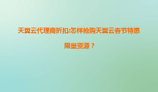 2025-08-01天翼云代理商折扣:怎样抢购天翼云春节特惠限量资源? 一、天翼云春节特惠活动简介 每逢春节前夕,天翼云都会推出"春节特惠"限时抢购活动,通过代理商渠道可享受额外折扣叠加。本次特惠涵盖云服务器、数据库、存...