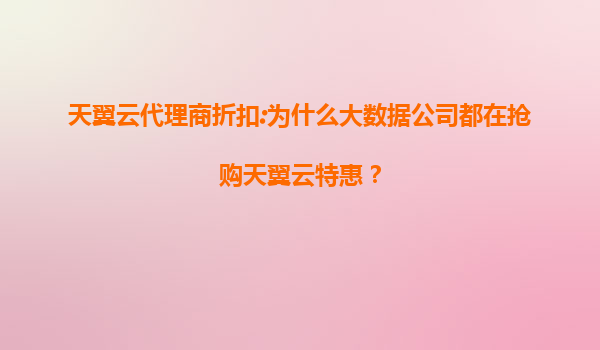 2025-07-31天翼云代理商折扣:为什么大数据公司都在抢购天翼云特惠? 近年来,随着云计算技术的快速发展,越来越多的企业开始将业务迁移到云端。作为中国领先的云计算服务提供商,天翼云凭借其强大的技术实力和丰富的行业...