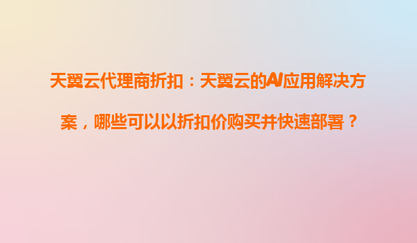 2025-10-29天翼云AI应用解决方案:代理商折扣下的高效部署与核心优势 一、代理商折扣:低成本拥抱天翼云AI能力 通过天翼云官方代理商合作,企业可享受专属折扣价快速获取...