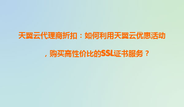 2025-10-29天翼云代理商折扣:如何利用天翼云优惠活动,购买高性价比SSL证书服务 天翼云代理商政策的优势 通过天翼云代理商政策,企业用户可以享受额外的折扣优惠。天翼云代理商不仅提供官方定价基础上...