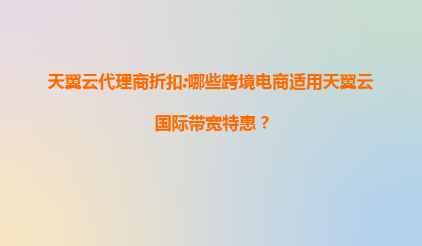 2025-07-27天翼云代理商折扣:哪些跨境电商适用天翼云国际带宽特惠? 一、天翼云国际带宽特惠简介 随着全球跨境电商的蓬勃发展,企业对高效、稳定的国际网络需求日益增长。天翼云作为中国电信旗下的云...