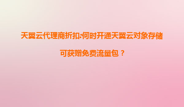2025-07-26天翼云对象存储的优惠活动解读 近期,天翼云针对代理商推出了一项极具吸引力的优惠政策:在指定时间内开通天翼云对象存储服务,即可获赠免费流量包。这一活动不仅降低了企业用户的使用成本,更体现了天翼云对广大用...